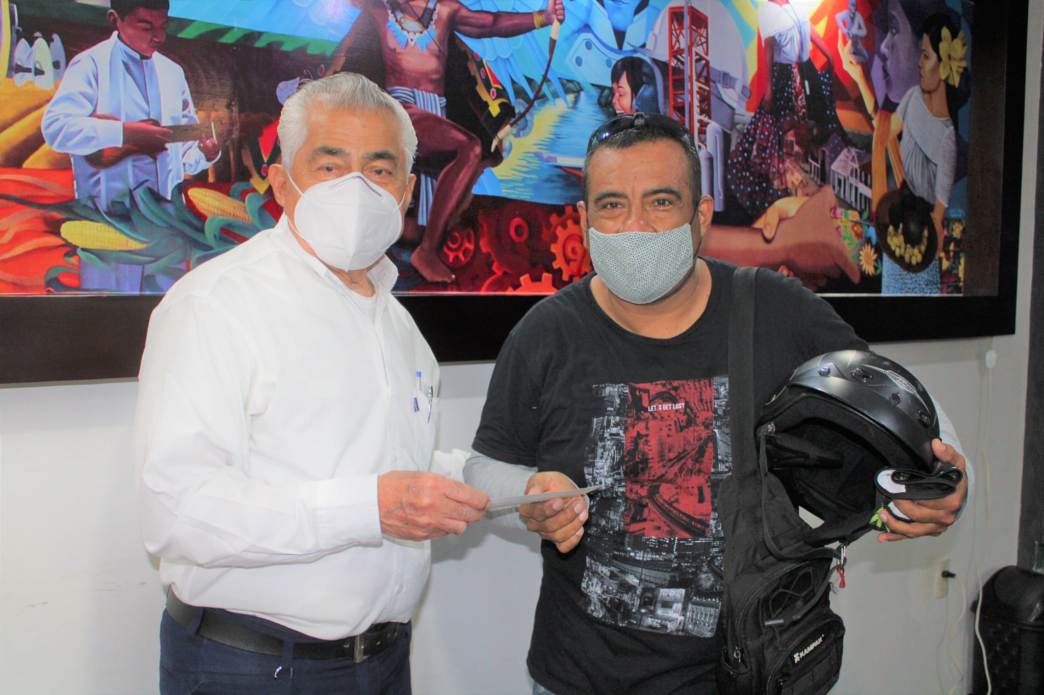 De esta manera, en mano del presidente fundador de este Motoclub, Ricardo Francisco Vasconcelos Suárez, el Alcalde hizo entrega de los recursos que permitirán la realización del evento en el que se llevarán a cabo conferencias y talleres dentro de la celebración por el 21 aniversario de actividades de dicho grupo.