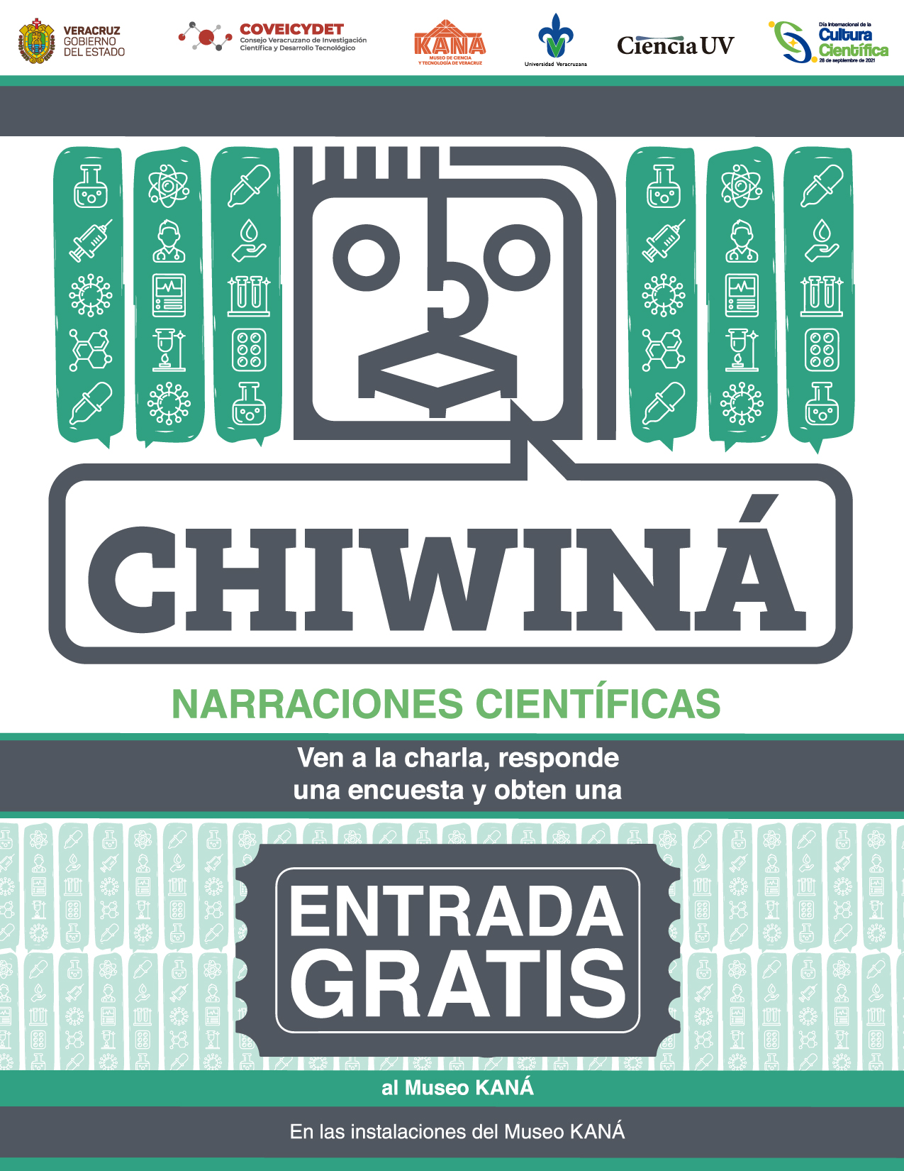 Xalapa, Ver., 8 Sept-21 (VRed).- El Consejo Veracruzano de Investigación Científica y Desarrollo Tecnológico (COVEICYDET), a través de KANÁ Museo de Ciencia y Tecnología de Veracruz y en colaboración con la Dirección de Comunicación de la Ciencia de la Universidad Veracruzana, puso en marcha el ciclo de conferencias científicas “CHIWINÁ: Narraciones científicas”, en el marco del Día Internacional de la Cultura Científica, a celebrarse el 28 de septiembre.