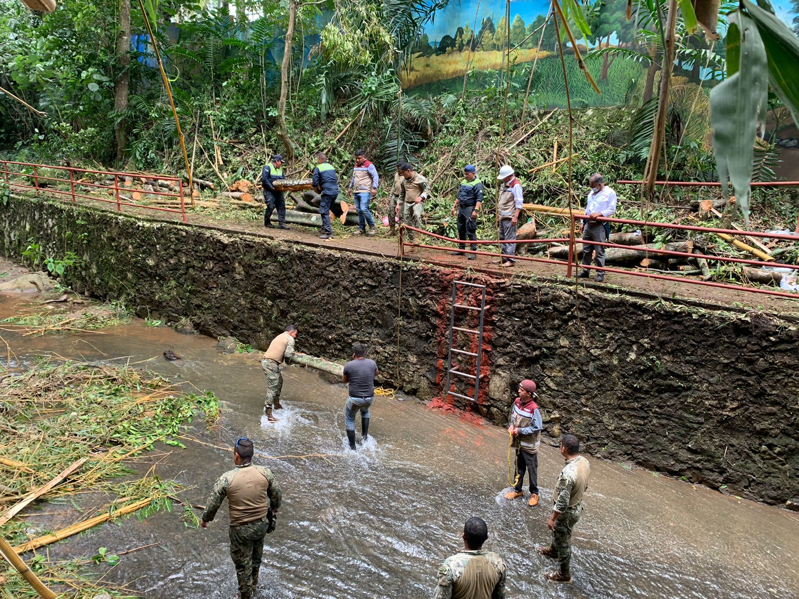 Las áreas de la Dirección de Protección Ciudadana y Movilidad (Policía y Tránsito Municipal), la Jefatura de Parques y Jardines y el departamento de Atención Ciudadana, realizaron los trabajos debido a que el tronco y las ramas impedían el paso del agua.