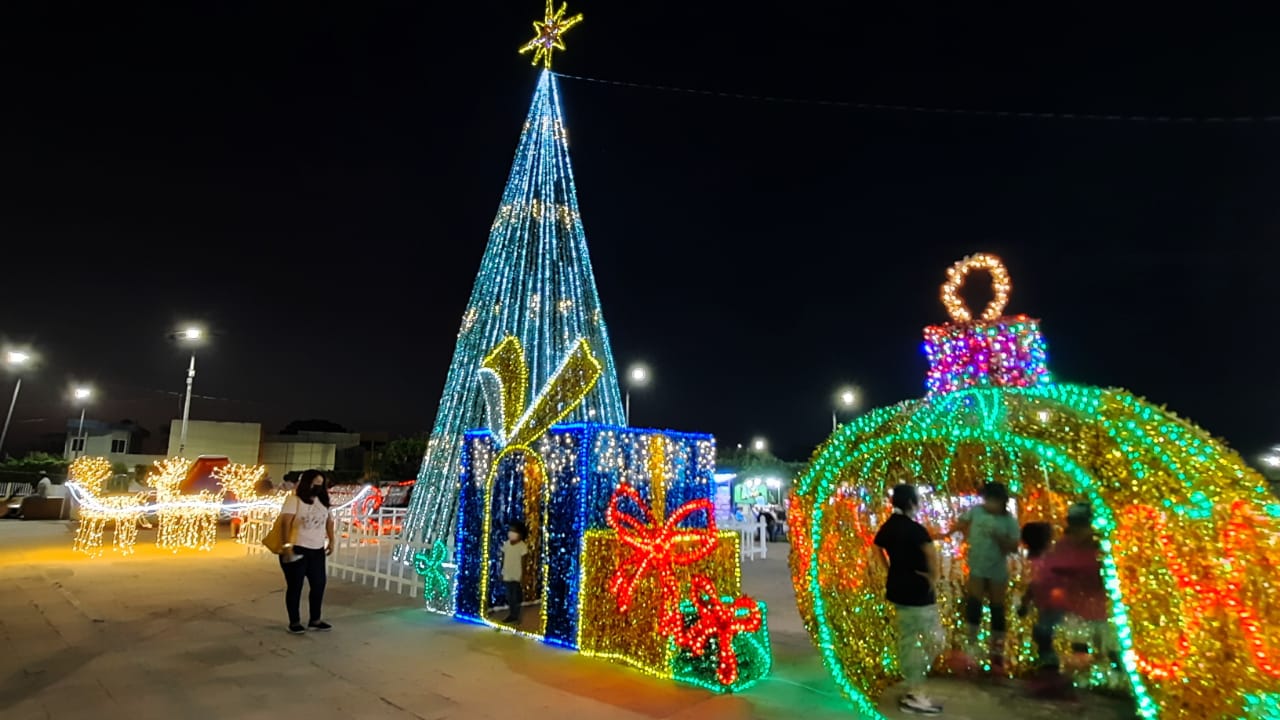 Minatitlán, Ver., 8 Dic-21 (VRed).- El H. Ayuntamiento de la ciudad que preside el alcalde Don Nicolás Reyes Álvarez, instruyó colocar un gran Árbol Navideño elaborado en los talleres del ayuntamiento, además de colocar otros adornos navideños en la explanada del Parque Reforma o conocido Parque de los Dos Leones, el cual se ubica en la colonia Petrolera.