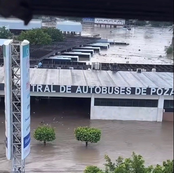 En Poza Rica el río Cazones superó los 7.30 metros de nivel (más de 3 metros por encima del umbral crítico de 3.3 metros) durante la madrugada del 10 de octubre, inundando zonas bajas y urbanas.