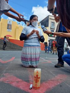 «Pido a mis hermanos en la fe que detengamos esta masacre», rezó Eduviges, de rodillas, en la Plaza Lerdo.