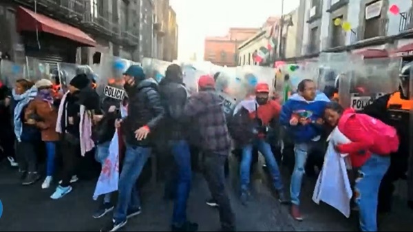 Policías que custodian Palacio Nacional respondieron con extintores y polvos irritantes que replegaron a los maestros que intentaban derribar la valla.