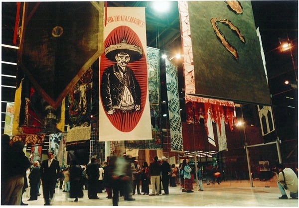 Desde un inicio “Marta pensó que la Bienal viajara, de allí también el empleo del papel kraft, porque todas las piezas irían enrolladas en un solo tubo. El estandarte más pesado es de 12 kilos”. Hasta el momento hay “poco registro al respecto”; se sabe que el proyecto itineró al Centro Cultural Clavijero, en Morelia, y al teatro Degollado, en Guadalajara.