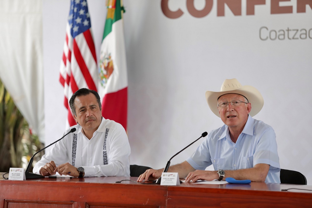 Coatzacoalcos, Ver., 19 Oct-21 (VRed).- Al reconocer el interés del embajador de Estados Unidos en México, Kenneth Lee Salazar, por el Corredor Interoceánico del Istmo de Tehuantepec (CIIT), el gobernador Cuitláhuac García Jiménez afirmó que el presidente Andrés Manuel López Obrador va cumpliendo su palabra de reimpulsar el desarrollo de esta región.