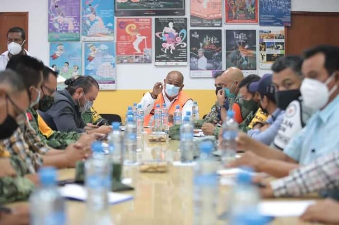 Papantla, Ver., Ago-21 (VRed).- El secretario de gobierno Eric Cisneros Burgos, encabezó este viernes en Papantla reuniones de coordinación y vigilancia con autoridades municipales de la región norte donde impactará esta noche el huracán Grace.