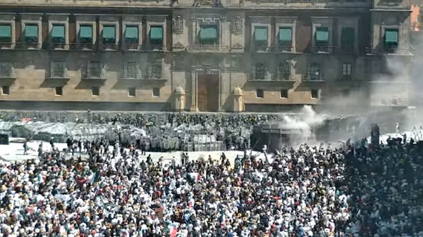 Todos los contingentes han llegado a la plancha del zócalo, grupo del bloque negro tiraron 4 bloques de metal que impedían el paso.