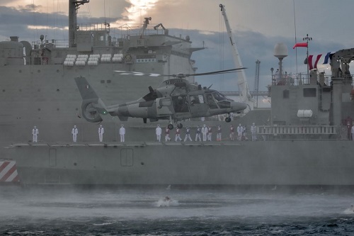 Previamente, en la Macroplaza del Malecón, las autoridades presenciaron el desfile militar que inició con maniobras acrobáticas de nueve aviones «Texano»; en tanto, un helicóptero “Panther” de la Estación de Búsqueda y Rescate de Veracruz, así como una embarcación “Defender”, efectuaron una operación de salvamento de tres pescadores en un simulacro de naufragio por mal clima.