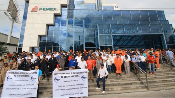 Eustacio Pérez García, dirigente del Frente Amplio de Subcontratistas al Servicio de Pemex (FASP), dijo que ya casi se cumple un año en espera de los recursos y aunque se han dado varias fechas, ninguna se ha concretado. Recordó que el año pasado también marcharon para exigir que bajen los recursos.