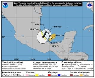 Xalapa, ver., 11 Oct-22 (VRed).- La tormenta tropical “Karl” se convirtió en un fenómeno meteorológico de alto riesgo la mayor parte del estado de Veracruz, sobre todo entre Tuxpan y Alvarado.