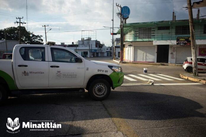 Minatitlán, Ver., 5 Oct-22 (VRed).- Dando cumplimiento a las instrucciones de la presidenta Municipal, Carmen Medel Palma, la jefatura de Tránsito y Vialidad continúa trabajando en el pintado de señalamientos viales en las principales avenidas de Minatitlán.