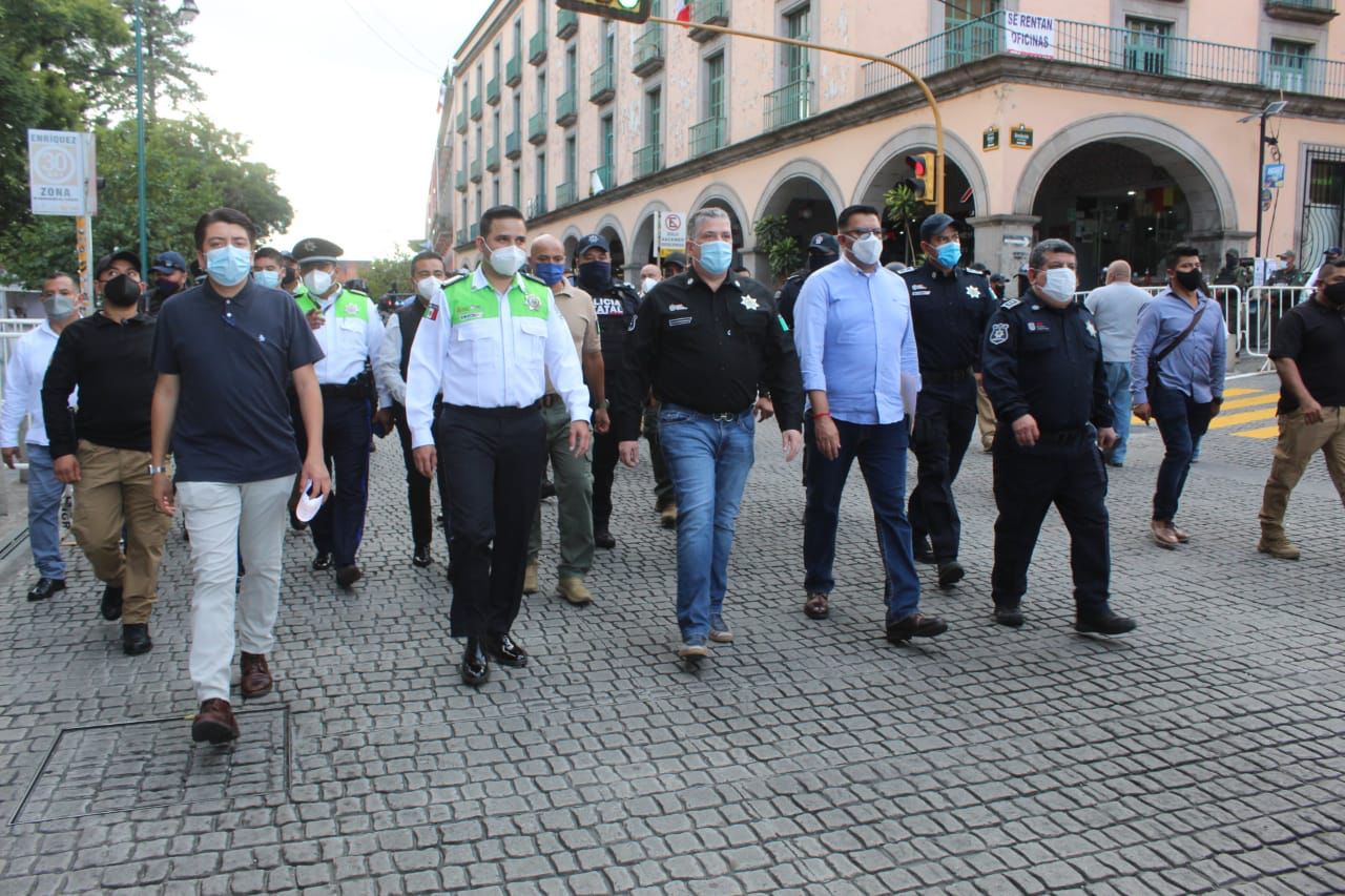 Xalapa, Ver., 15 Sept-21 (VRed/Foto: Julio Argumedo).- Con el objetivo de garantizar la seguridad ciudadana en el marco de los festejos del 211 Aniversario de la Independencia de México, el secretario de Seguridad Pública (SSP), Hugo Gutiérrez Maldonado, supervisó el operativo de Fiestas Patrias implementado en Xalapa, para lo cual fueron cerrados 16 cruceros y desplegados 417 efectivos estatales en el primer cuadro de la ciudad.