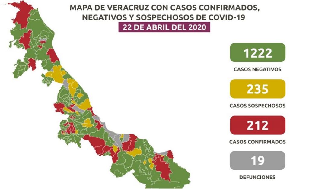 Reporte COVID-19 en Veracruz del 22 de abril de 2020.